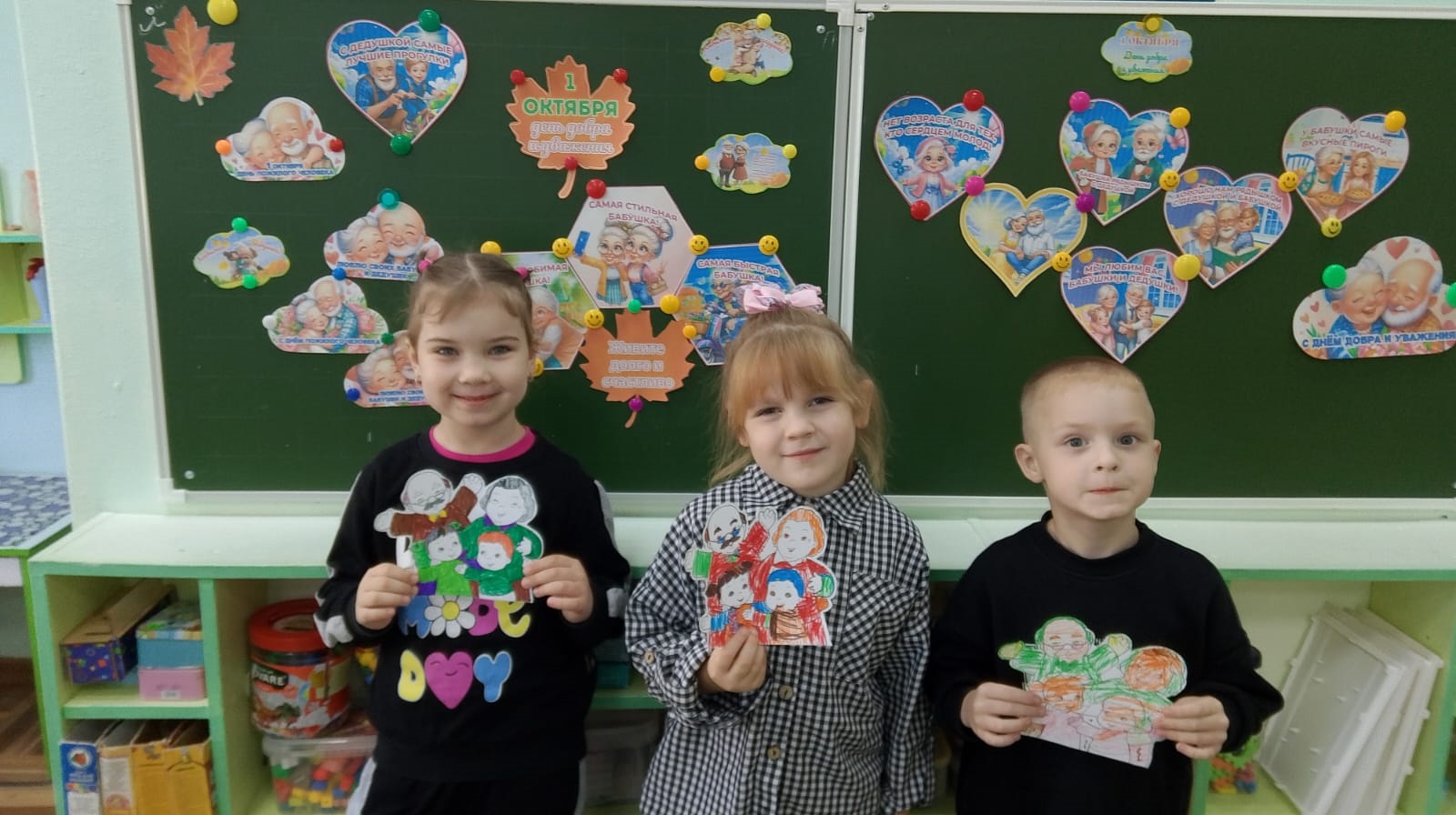 В нашем детском саду в честь Дня пожилых людей воспитатель Терехова О.Г. была проведена беседа и игра с детьми 14 группы, дошкольники охотно делали открытки и готовили поздравления для своих бабушек и дедушек. Мы желаем всем пожилым людям здоровья, счастья, достатка, оптимизма, насыщенной жизни, любви и заботы близких! Для нас самая большая благодарность – видеть Ваши сияющие радостью глаза!