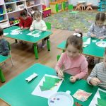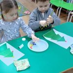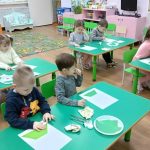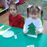 В целях закрепления представления детей о празднике «Новый год», обучения умению составлять изображение ёлочки из готовых форм с частичным наложением элементов друг на друга. Закрепления умения наклеивать треугольники в определённой последовательности: располагая в высоту от самого большого до самого маленького. Воспитатель Улькина Е.Ф. провела занятие с дошкольниками 7 группы по изготовлению аппликации «Новогодняя ёлочка».