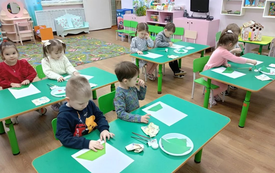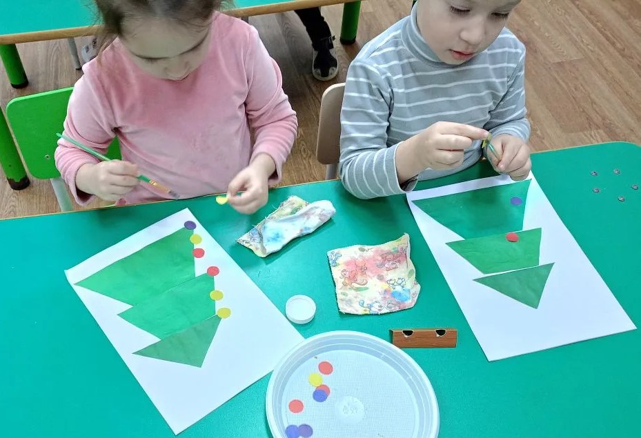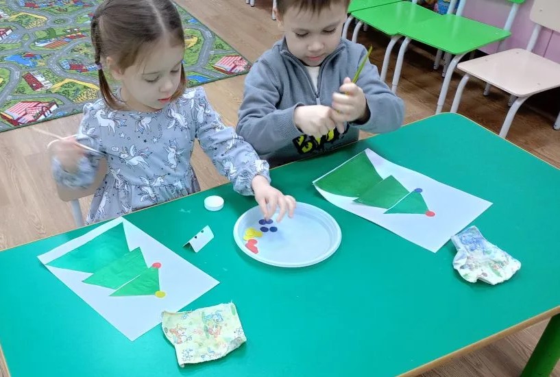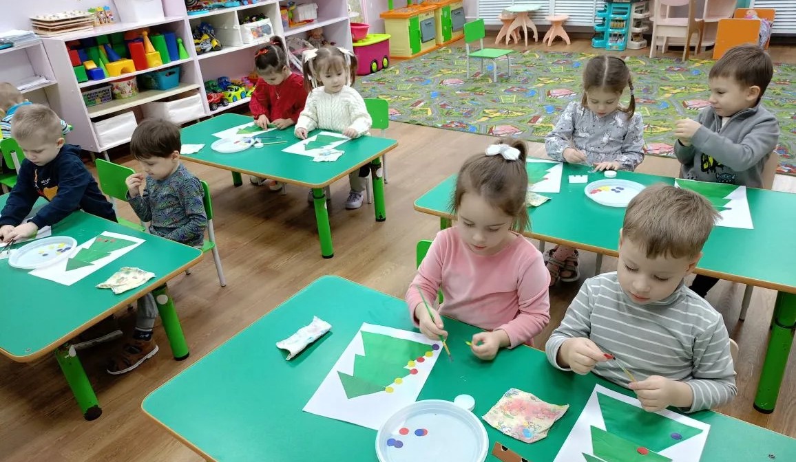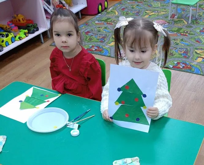 В целях закрепления представления детей о празднике «Новый год», обучения умению составлять изображение ёлочки из готовых форм с частичным наложением элементов друг на друга. Закрепления умения наклеивать треугольники в определённой последовательности: располагая в высоту от самого большого до самого маленького. Воспитатель Улькина Е.Ф. провела занятие с дошкольниками 7 группы по изготовлению аппликации «Новогодняя ёлочка».