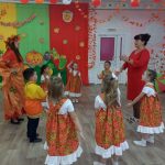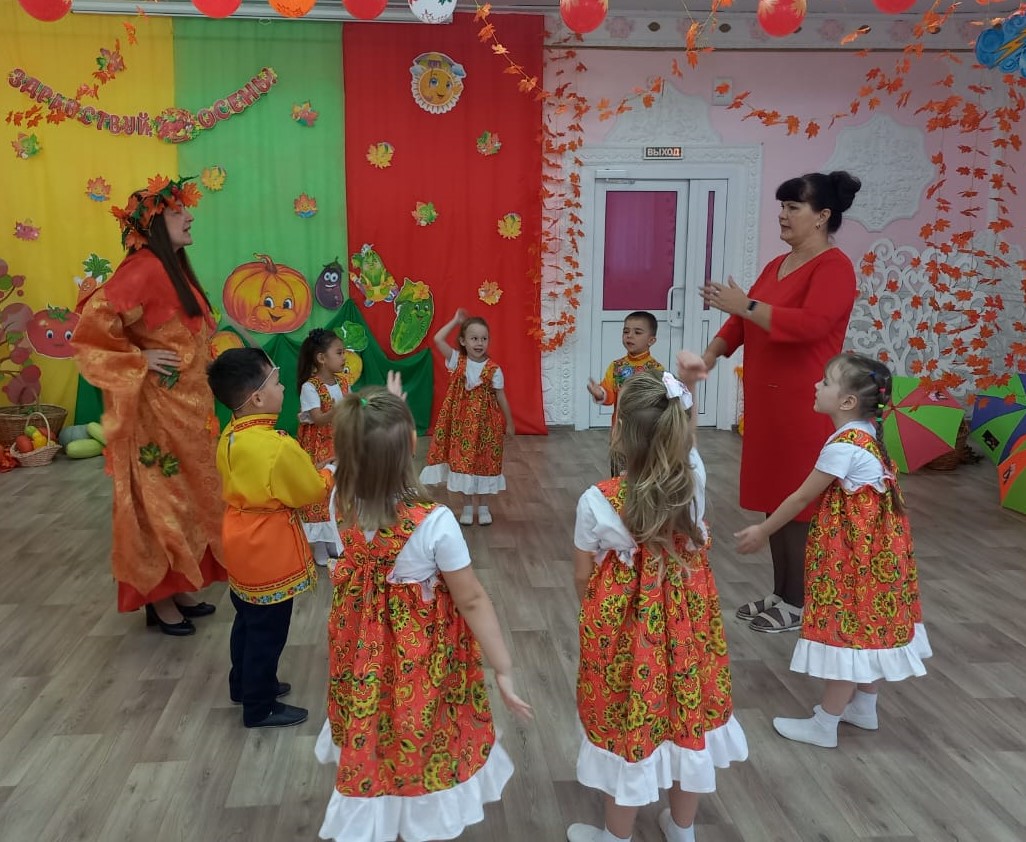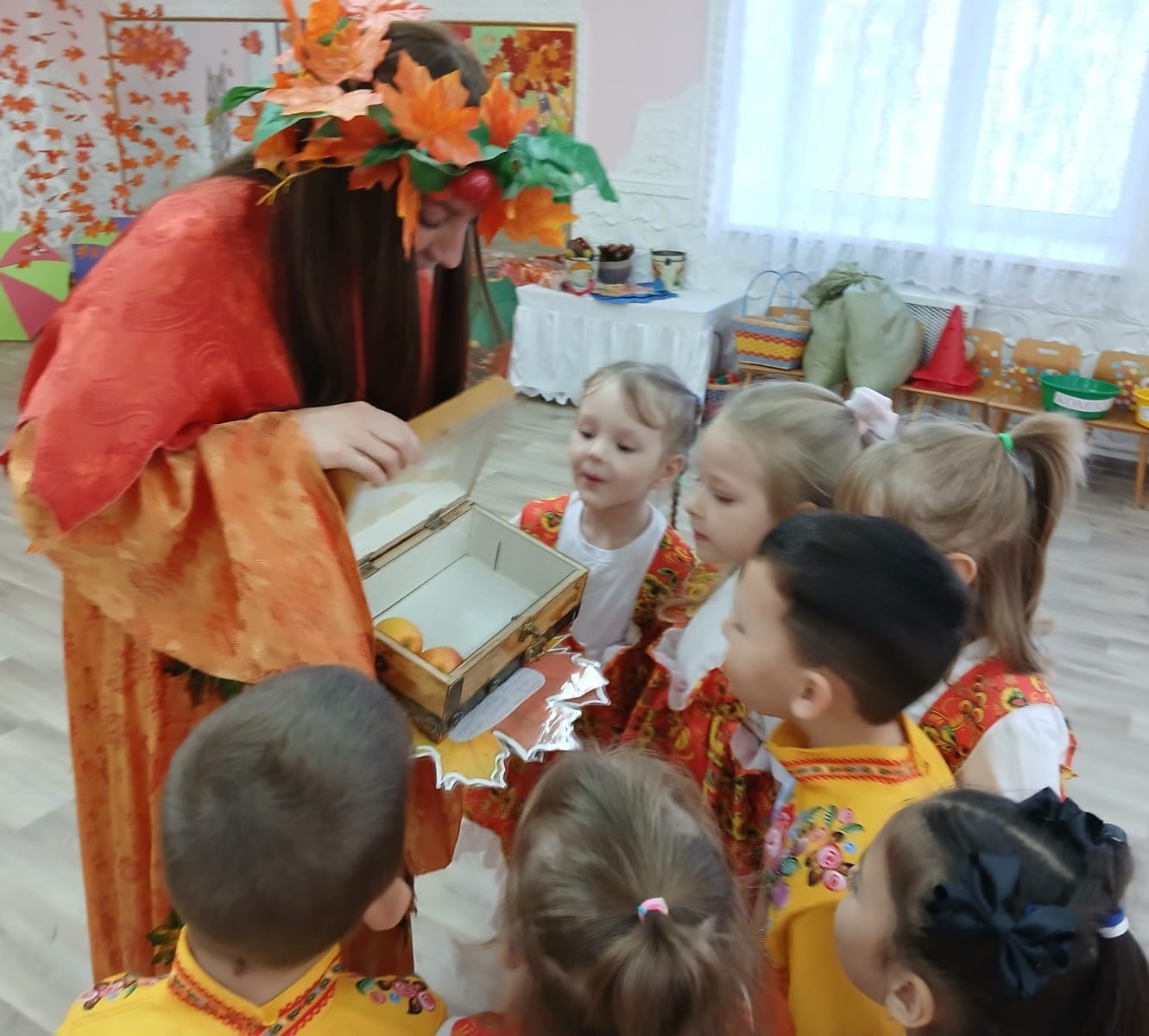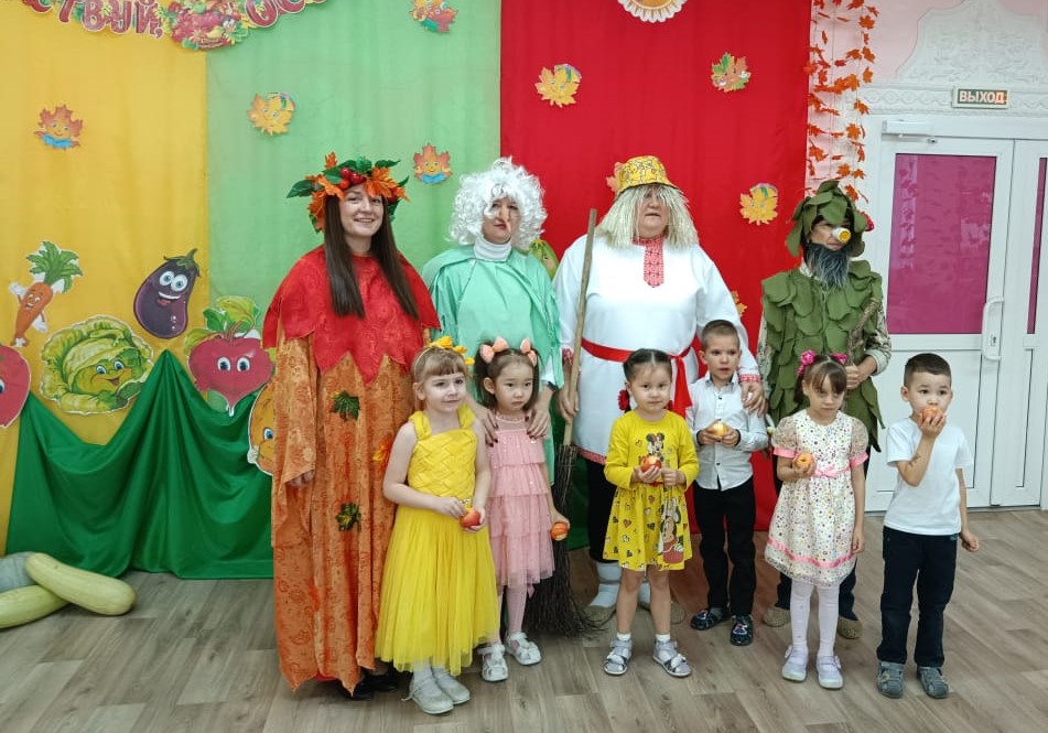 У дошкольников 9 и 13 групп было проведено развлечение «Осенины, праздник урожая». К ребятам пришли герои русских сказок и старых добрых мультфильмов – Лесовичок, красавица Осень, домовенок Кузя и Кикимора. Они поиграли с ребятами, послушали чтение стихотворений, посмотрели танцы и поводили хоровод.