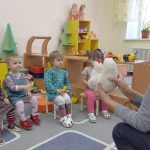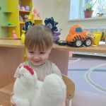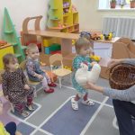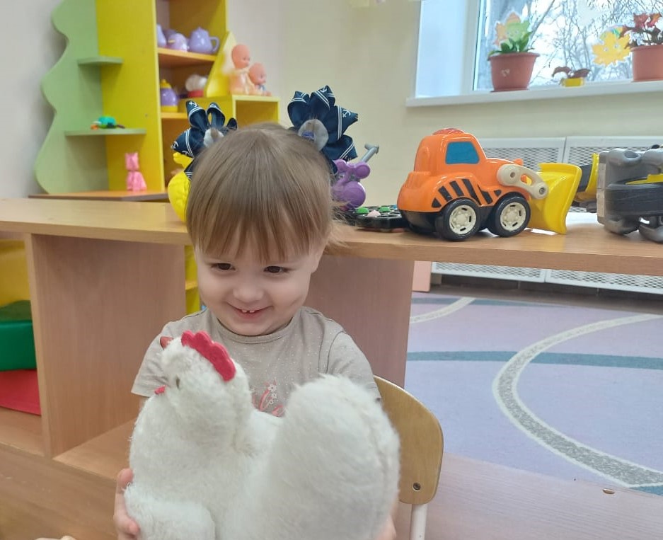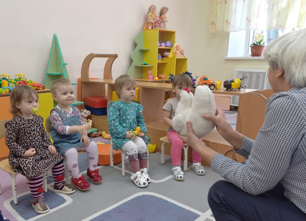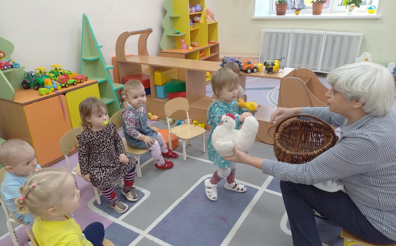К малышам из 4 группы на занятие пришла курочка Ряба из одноименной русской народной сказки, которая попросила ребятишек покатать золотое яичко. Интересная, доступная и занимательная подача народной сказки для ребят получилась у воспитателя Мацак О.И.