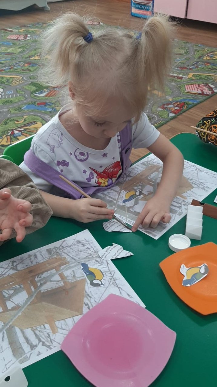 Воспитатель Володина А.В. провела с ребятами 7 группы познавательную беседу о синичках, а в ходе творческой деятельности дошкольники выполнили замечательные и оригинальные аппликации «Синичкина кормушка».