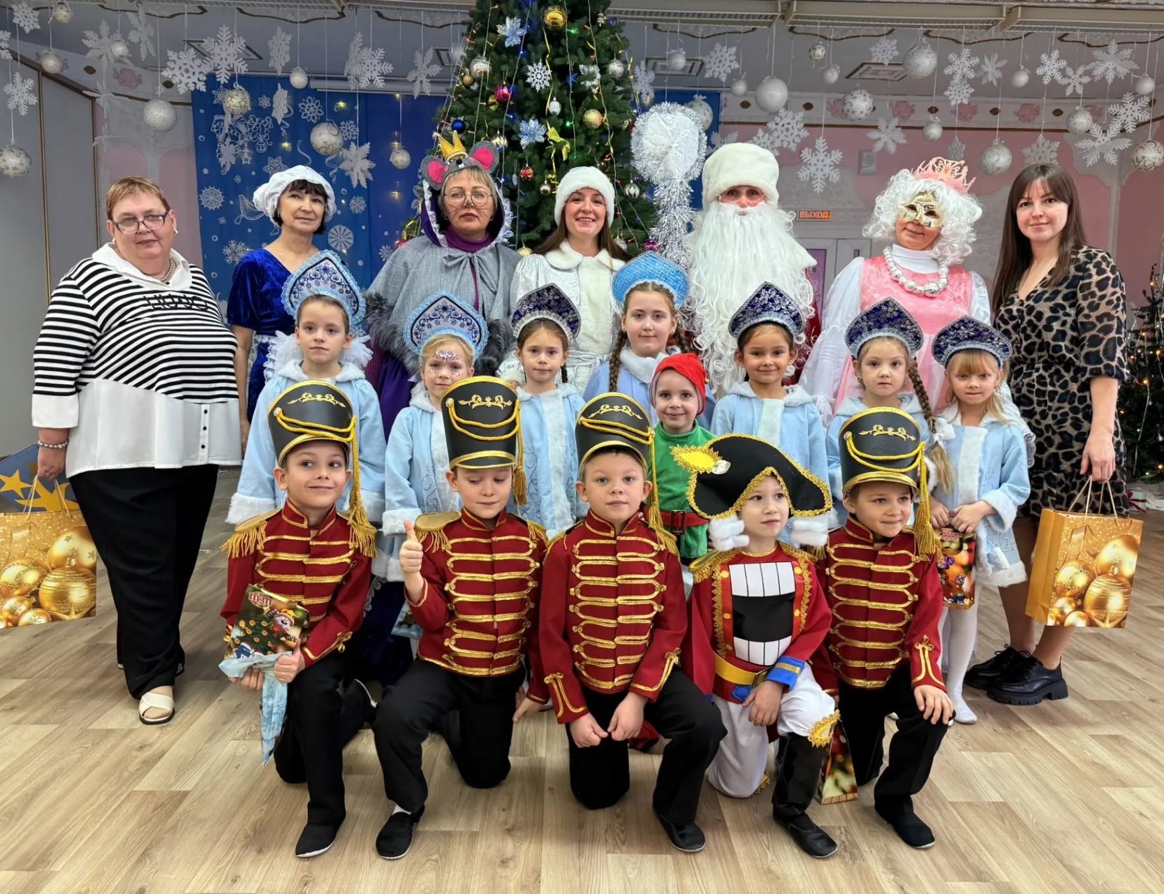 К ребятам в гости пришли самые долгожданные персонажи: добрый Дедушка Мороз, его очаровательная внучка Снегурочка, озорные Снежадина и фея Драже, а также настоящая королева Мышильда! 🧙‍♀️🎁