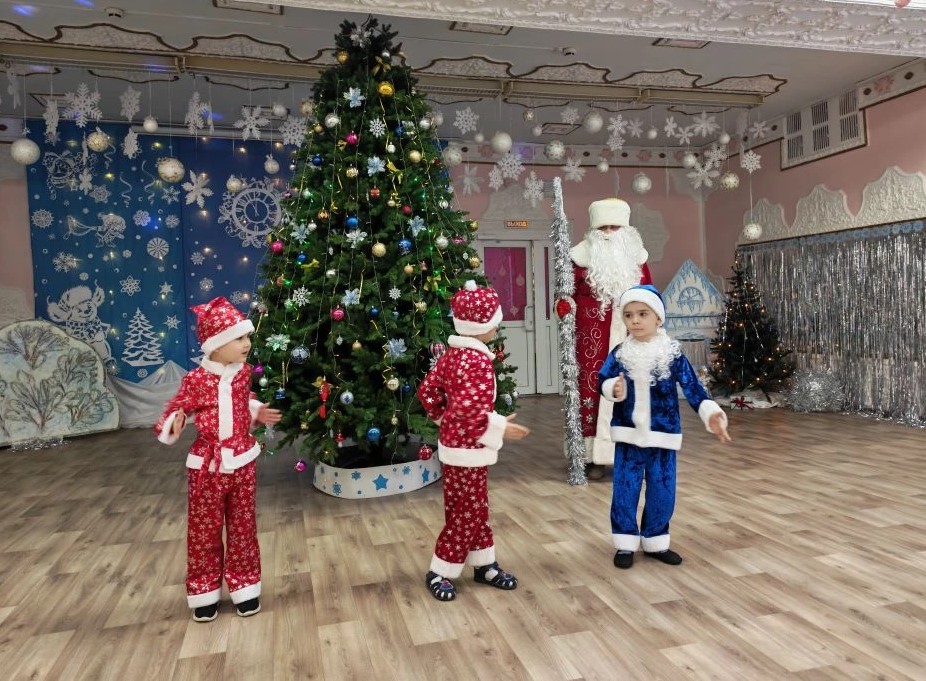 дети звонко пели новогодние песни, наполняя зал радостью и весельем; зажигательно танцевали, показывая всю свою энергию и талант;