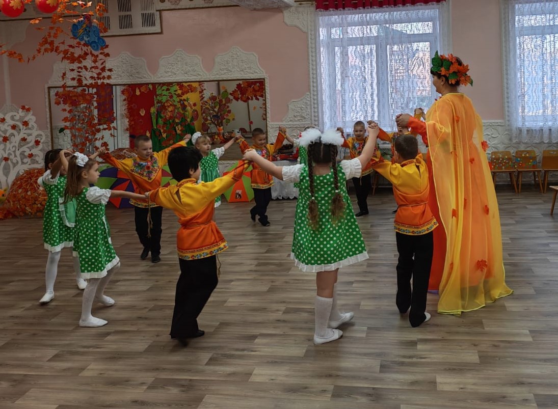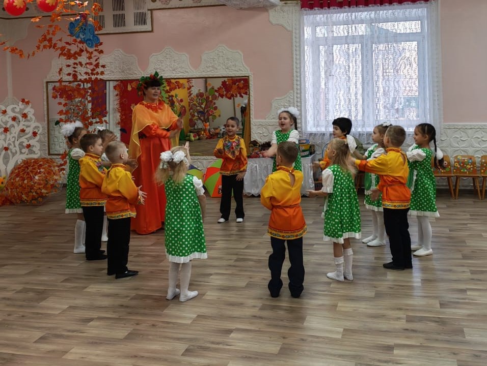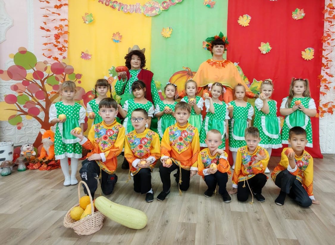 Для ребят 14 и 10 групп было проведено развлечение «Осенины или праздник урожая». В гости к ребятам пришли Осень и Пугало, которые напомнили ребятам о народных традициях и об осенних заботах и забавах.