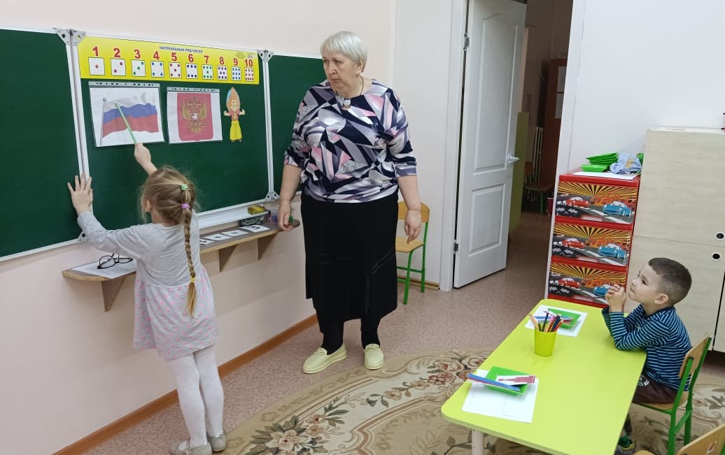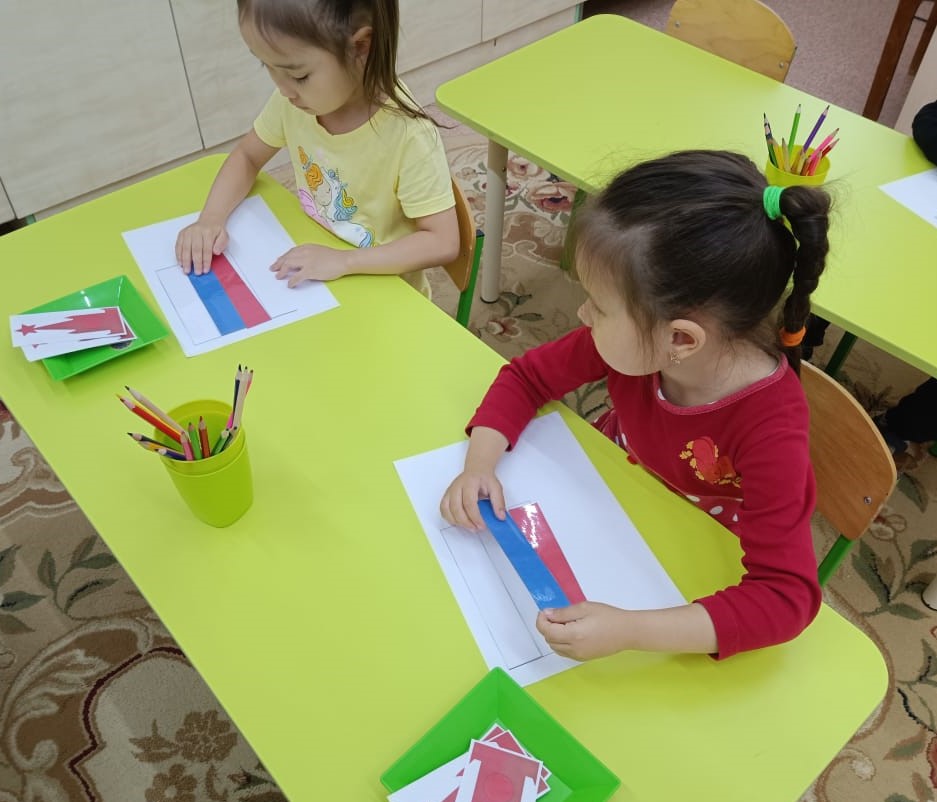 На занятии с учителем – дефектологом ребята 9 группы закрепили знания о государственной символике РФ, повторили количество и названия цветов флага, решали интересные задачи с цифрой 3.