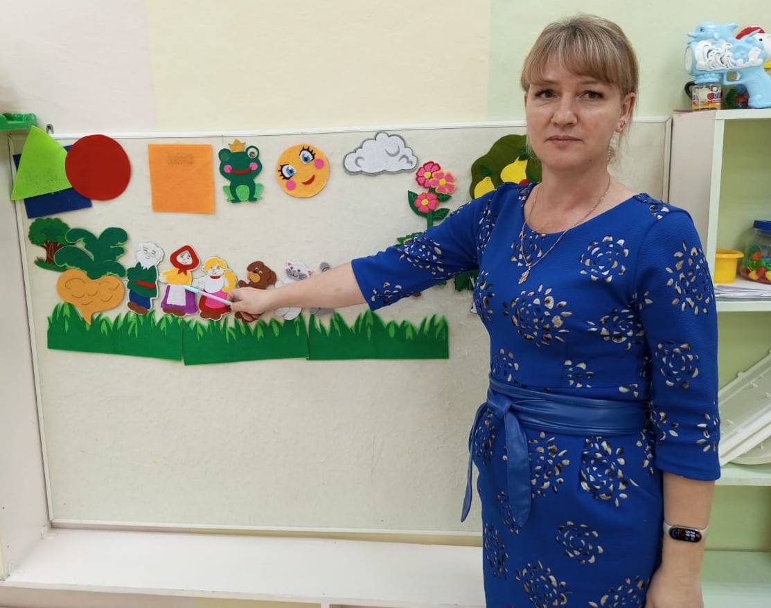 Малыши 4 группы посмотрели театрализацию сказки «Репка», которую легко визуализировала на фланелеграфе воспитатель Пылаева Т.В.