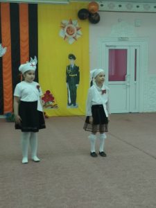 Традиционно в нашем детском саду проходят мероприятия, посвящённые празднованию Дня Победы. Шестого мая прошли утренники в 9, 11, 13 подготовительных группах. Утренник становится итогом этих мероприятий. Он готовится с целью формирования у детей знаний об истории своей страны, воспитания чувства гордости за героизм нашего народа, воспитания устойчивого интереса к героическому прошлому нашей страны. В программу мероприятия входят песни о празднике Победы, о мире, о солдатах, танцы, стихи о войне, о бессмертном подвиге защитников Отечества. В ходе мероприятия дошкольники организованно идут возлагать цветы у памятника «Мемориал памяти» и чтим память о них минутой молчания.