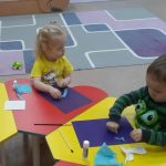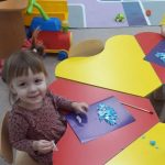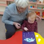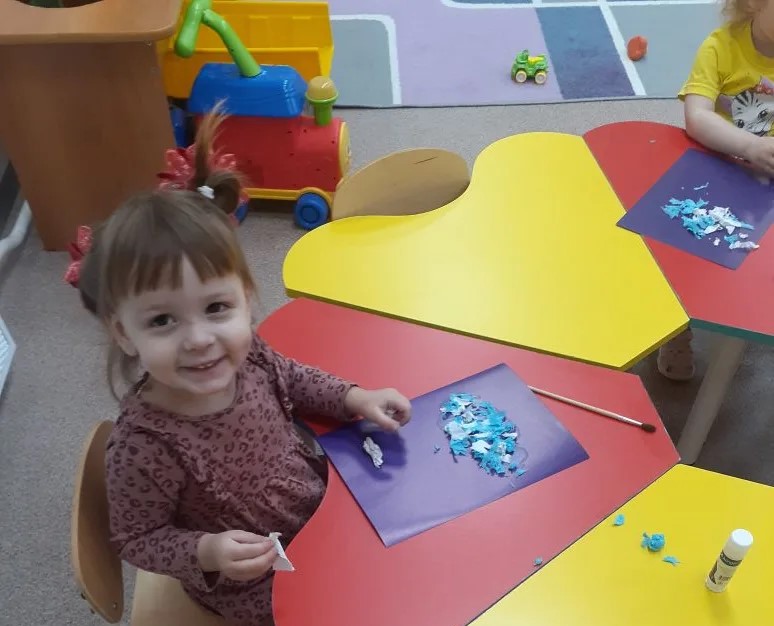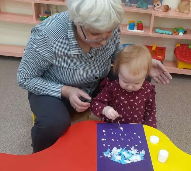 Воспитатель Мацак О.И. провела занятие по художественно-эстетическому развитию с детьми 4 группы по теме «Снежок порхает, кружится». Малыши старательно рисовали кисточкой белый снежок.