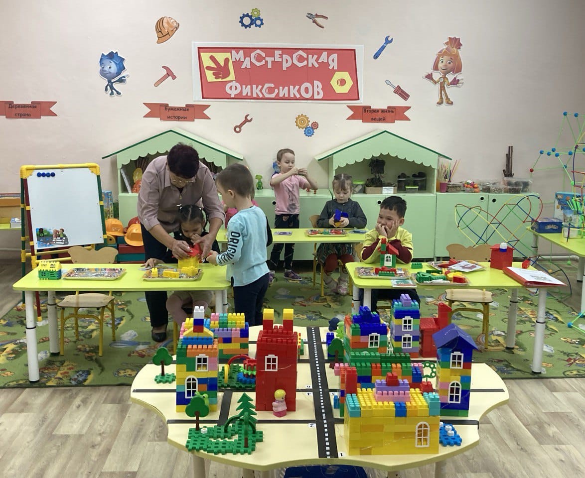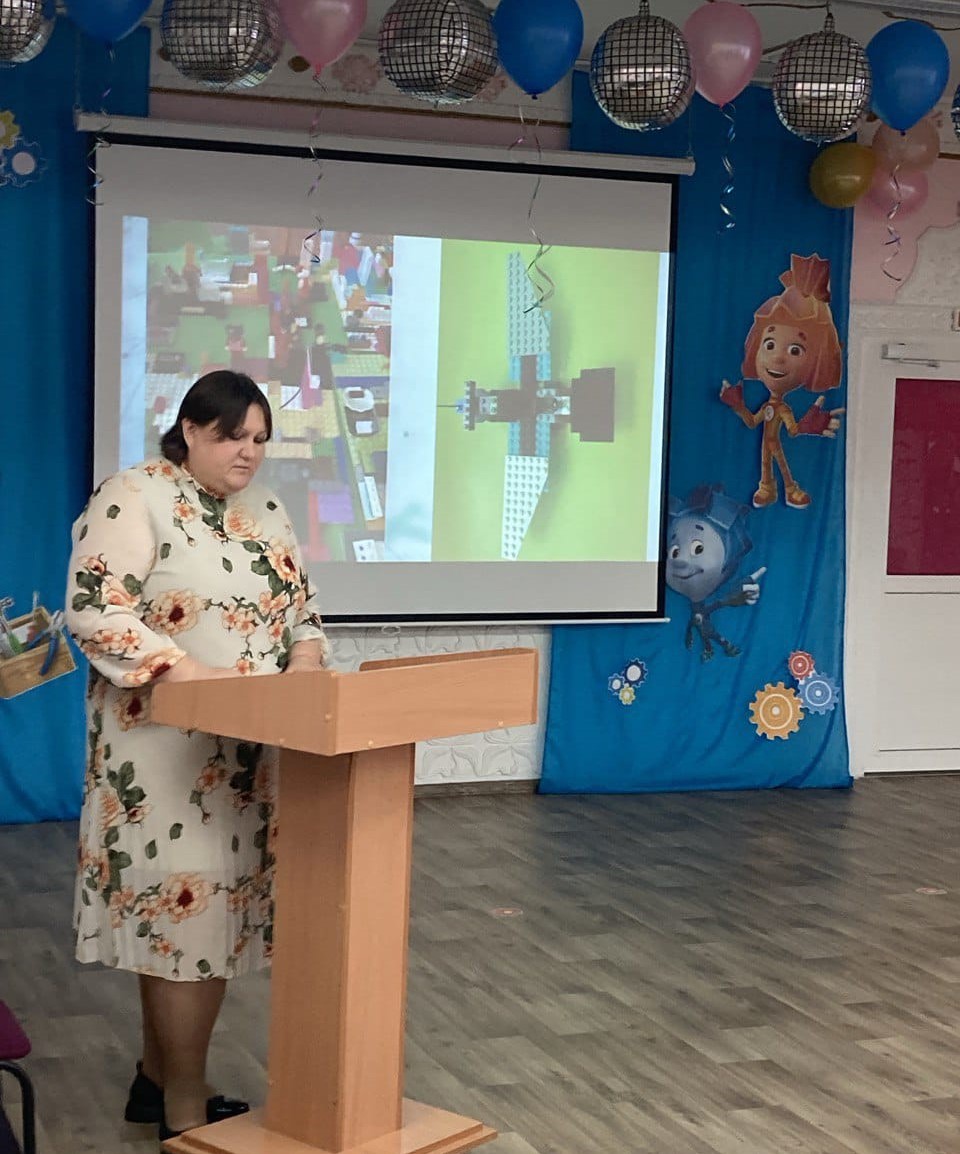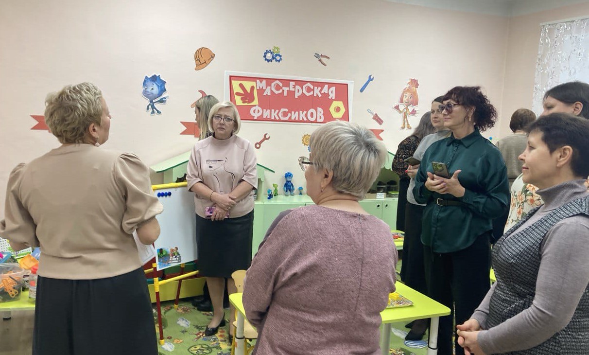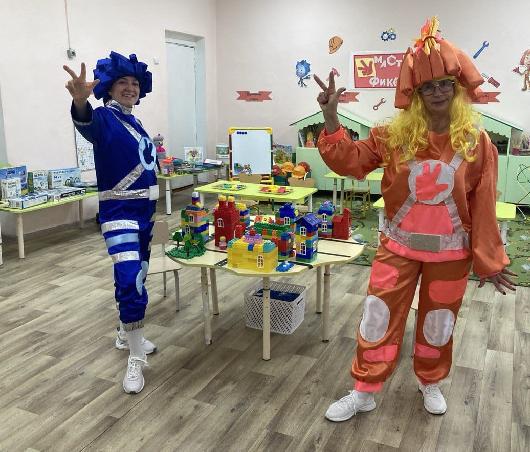 В части обмена опытом была проведена экскурсия в комнату по развитию пространственного мышления «Мастерскую Фиксиков», где гостей встретили профессор Чудаков, Симка и Нолик. Герои известного мультфильма представили комнату, где главными гостями и посетителями являются дети.