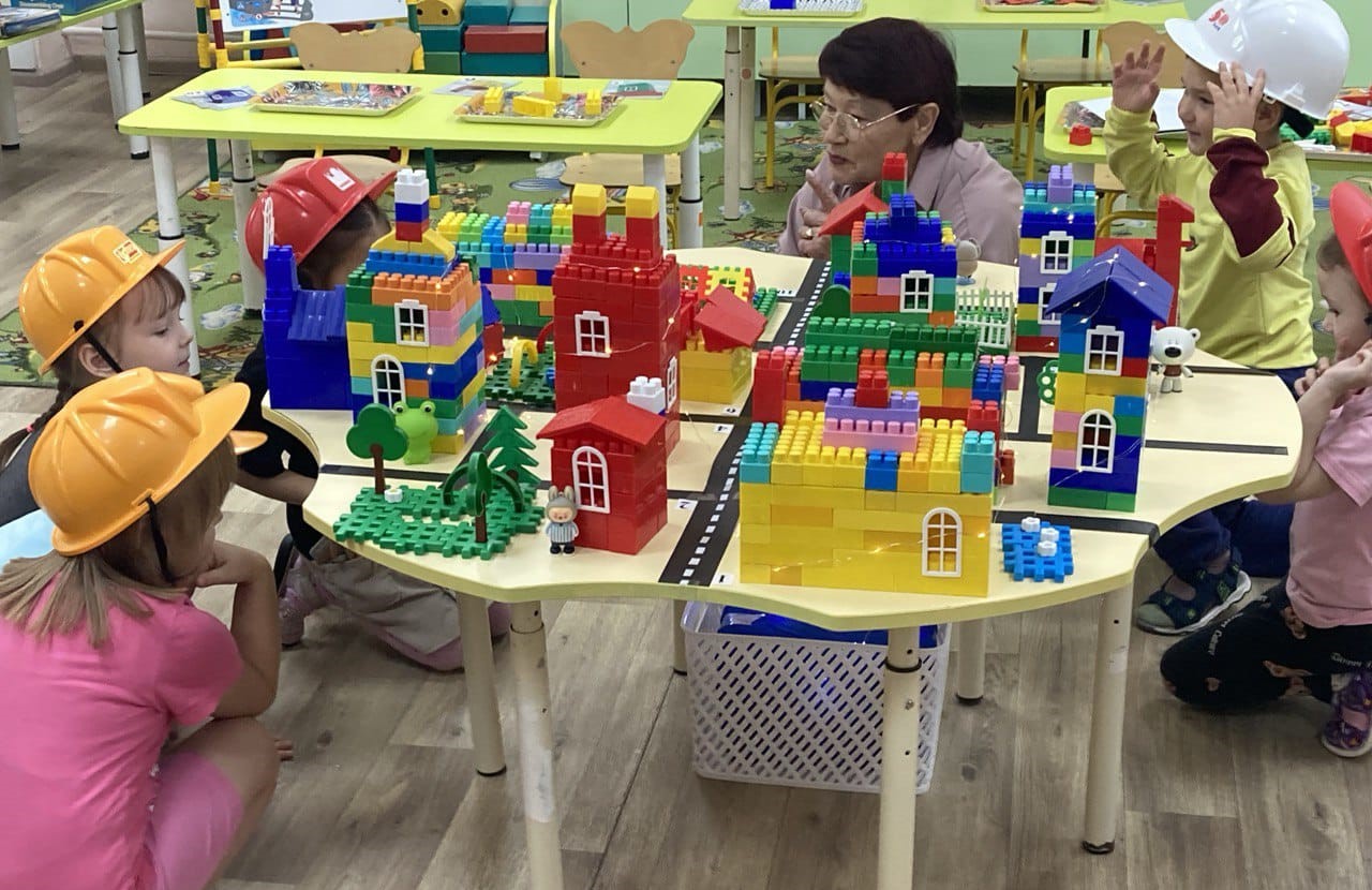 Далее участникам МО был представлен открытый показ по конструированию в старшей группе. Дошкольники 13 группы строили сказочный город под руководством воспитателя Шахуровой Н.А.